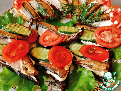 Что здесь можно сказать!? Быстро, вкусно, ароматно! Взяла хлеб бородинский, обжарила слегка и смазала смесью майонеза с чесноком. Для яркости добавила кружочки помидоров. Очень вкусно! Давно не ели такие бутерброды!