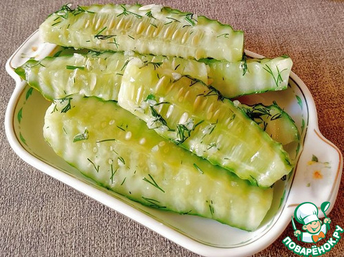 Достались мне огурцы переростки. Отказаться не смогла и выбросить жалко! Но они вкусные, несмотря на то, что крупноватые семечки уже. И хочу сказать – вкусные малосольные огурчики получились! Нам понравились. Хрустящие, ароматные!