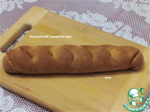 Не давал покоя мне данный рецепт. Все же решилась. Готовила половину нормы. С ржаным дрожжевым тестом приходилось работать. Оно не очень приятное в лепке, какое-то пластилиновое на ощупь. А здесь нет, очень даже комфортное получилось тесто. Легко приготовила без применения какой-либо техники, свернула в рулет. У меня получился длинный и худой. Надрезы делала узкой лопаткой. Выпекала 30 минут при 180 градусах. На вкус попробовала после полного остывания. Забыла смазать маслом или сбрызнуть водой. И правда, хлебушек с тонким ароматом меда. Плотненький в меру и вкусный. Долго не залежится, съедим.