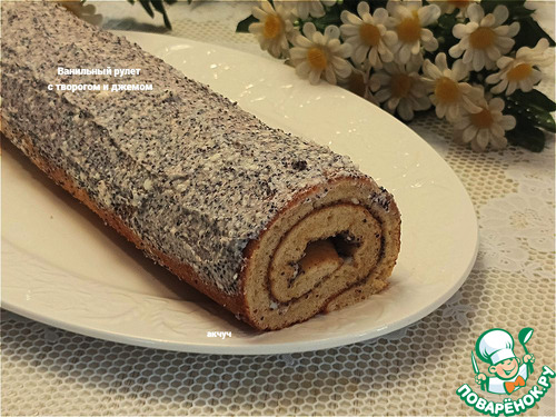 Ванильный рулет с творогом и джемом