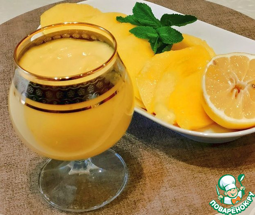 Это необыкновенно вкусно! Я бы сказала, что это десерт, т.к. использовала свежий манго. Манго у меня был вкусный, очень сочный. Взбила его со сгущенкой блендером. И, конечно же лимонный сок, который очень сбалансировал вкус. Ели ложкой.