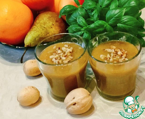 Очень и очень вкусный смузи! А какой аромат!!! У меня все фрукты вкусные, сочные и ароматные были. Да ещё и базилик! Мед не добавляла, мне было без него ооочень вкусно и сладко.