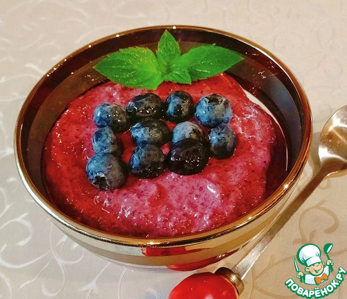 Очень вкусный десерт! Из ягод (из заморозки) – малина, черника, вишня. Прошу прощения у автора, у Алины! Не внимательная я стала! Я взяла и всё в блендер, взбила, оставила на время. А потом… как же вкусно! Необыкновенно!
