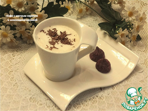У меня не было мятного сиропа, но был сироп мохито, его и использовала. Получился вкусный кофе с привкусом сиропа.
