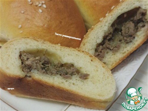 От предыдущей выпечки осталась мясная начинка, поэтому искала рецепт, куда бы ее применить. Муки ушло чуть меньше (450 г), соли 0,5 ч.л., остальное по рецепту. Тесто замешивала в хлебопечке и там же оно настаивалось 40 минут. С ним легко было работать, мягкое, живое, растущее в руках. Налепила часть с мясной начинкой и часть с сосисками. Получилось замечательно! Тесто вкусное, пышное. Очень нам понравилось! Выпекала 20 минут при 180 градусах, предварительно смазав молоком и посыпав кунжутом.