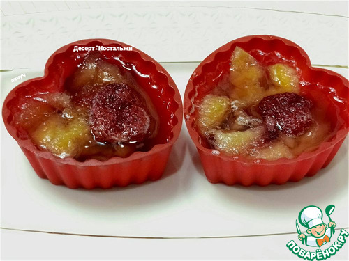 Я использовала смесь клубники и персика (все из морозилки). В наличии было клубничное желе. Обошлась без сахара. Все подготовила и разложила в маленькие формочки. Не смогли дождаться полного застывания желе. Оооочень вкусно получилось!