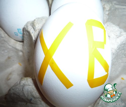 Из изоленты нарезаем полоски, можно различные фигурки и т.п. на сколько хватит вашей фантазии и терпения(мы делали именные яйца и с надписью ХВ)