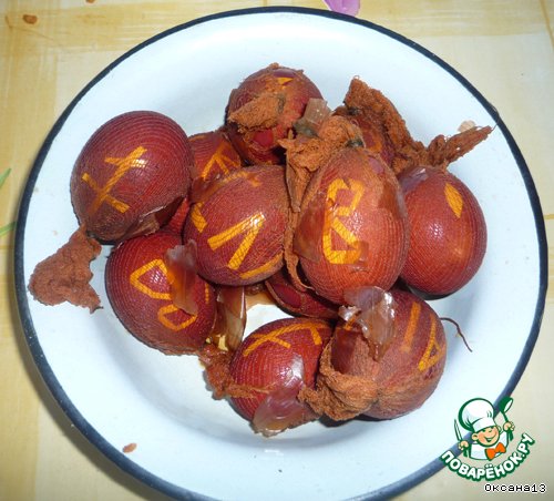 Отвариваем яйца до готовности в луковой шелухе, остужаем.