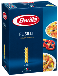 По форме фузилли напоминают три скрепленные вместе и закрученные по спирали лопасти, благодаря чему паста прекрасно удерживает соус. С фузилли невозможно ошибиться: они прекрасно сочетаются со всеми видами соусов. Фузилли лучше всего подходят к соусам на основе мяса или сыра, однако также прекрасно раскрывают свою индивидуальность в салатах: мелко нарезанные свежие овощи, специи, тунец, заправленные оливковым маслом – идеальный вариант позднего ужина. Если Вы ищете простой рецепт, то Barilla предлагает Вам приготовить фузилли с классическим соусом "Базилико", добавив в него любимый сыр.