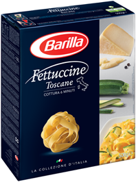 Такое название паста получила из-за внешнего сходства с ленточками (итал. Fettuccia —значит ленточка). Феттучине - истинный шедевр итальянской кухни - тонкие плоские полоски теста шириной около 7 мм. Их шероховатая и слегка пористая текстура идеально удерживает соус на поверхности и позволяет ему максимально раскрыть все оттенки вкуса. Феттучине, пожалуй, один из самых благородных видов пасты. Деликатный вкус тонко раскатанного теста может быть дополнен смелыми нотками пикантных соусов. Попробуйте Феттучине с ассорти различных овощей, пряных трав и креветок.
