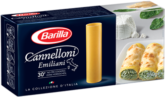 Историки сомневаются о точном месте происхождения Каннеллони, но они единодушно сходятся во мнении, что Каннеллони - один из первых видов пасты. С давних времен их готовили из теста, замешанного на воде и смолотого с солью зерна, затем тесто раскатывали и нарезали на прямоугольники, на которые клали начинку, сворачивали в трубочку и затем запекли. Каннелони фаршируют мясным или рыбным фаршем, сыром, грибами или овощами, укладывают на противень, заливают соусом (чаще всего используют классический томатный или соус бешамель) и запекают в духовке до готовности. Каннеллони Barilla не требуют предварительного отваривания.
