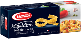 По форме Мафальдине напоминают длинную ленту с волнистыми краями, которые не теряют своих изящных изгибов даже после варки. Напротив, считается, что секрет Мафальдине состоит как раз в неравномерной текстуре пасты в плоской середине ленты и волнистых краях. Характерной чертой кухни Неаполя является использование густых, насыщенных соусов. Barilla рекомендует Мафальдине с окороком и луком-пореем, за пикантность в этом блюде отвечает белое вино.