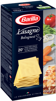 Болонья - город на севере Италии, который славится своим гостеприимством и разнообразием кулинарных традиций. Лазанья Болоньезе наилучшим образом отражает всю суть этого города и всю его страсть. Лазанья, пожалуй, одно из самых популярных итальянских блюд: тесто прослаивается различными начинками – мясом, грибами, сыром, овощами или морепродуктами, а сочность блюду придает использование специальных соусов. Традиционная Лазанья Болоньезе готовиться на основе двух соусов: мясного рагу "Болоньезе", и соуса на основе молока, муки и сливочного масла – "Бешамель", все слои щедро посыпаются тертым сыром. В ассортименте Barilla также представлена Лазанья Яичная.