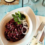 Не кидайте в меня тапками! Хочу предложить Вам простой салат из капусты, который, наверняка, делала каждая хозяйка. Но пикантная заправка из клюквенного соуса облагородит это салат, и он заиграет новыми красками и вкусами.