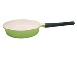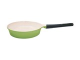 Сковорода 24 cм, без крышки. Зеленая в два тона. Светлое (кремовое) внутреннее покрытие. Толщина дна - 4,1 мм, объем - 1,5 л.