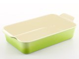 Форма для выпечки или запекания 39 на 22 см, 2 ручки, без крышки. Зеленая в два тона. Светлое внутреннее покрытие. Толщина дна - 4,5 мм.
