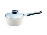 Ковш 18 cм, 1 ручка, со стеклянной крышкой. Белый в два тона. Белое внутреннее покрытие. Глубина - 95 мм, толщина дна - 4,1 мм, объем - 2,4 л.