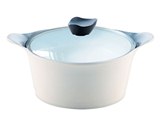 Жаровня 24 cм, 2 ручки, со стеклянной крышкой. Белая, белое внутреннее покрытие. Толщина дна - 4,1 мм, объем - 2,7 л.
