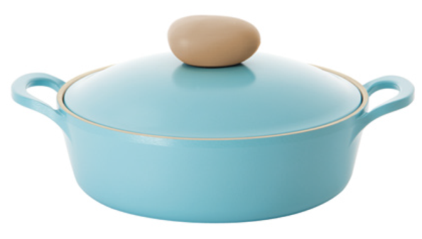 Голубое внешнее и белое внутреннее керамическое покрытие. Диаметр: 22 см, объем: 2,8 л, размер: 24,5 х 24,5 х 12,5 см