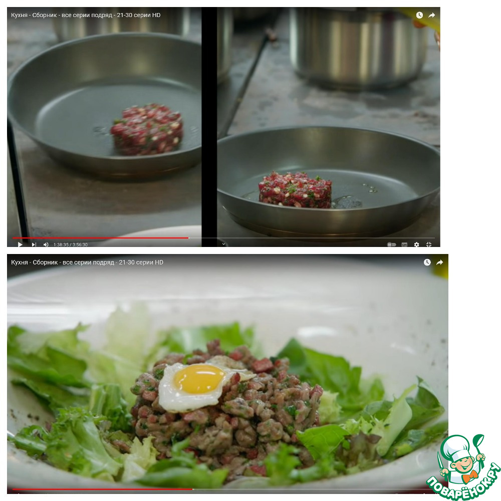 Т/с: "Кухня". " - Шеф! Тут вот тартар! - Что ты мне суёшь? Это что возврат? Да нет, девушка попросила пожарить. - Тартар пожарить? - Я ей пыталась объяснить что мясо должно быть сырым! - Может ей ещё мороженое вскипятить? За последние пару минут во французской кулинарии мало что изменилось! Тартар - сырое блюдо! Его не жарят! - Пожарить тартар попросила моя подруга! И если она попросила его пожарить - будь любезен это сделать! Ладно! Жареный тартар - так жареный тартар! "