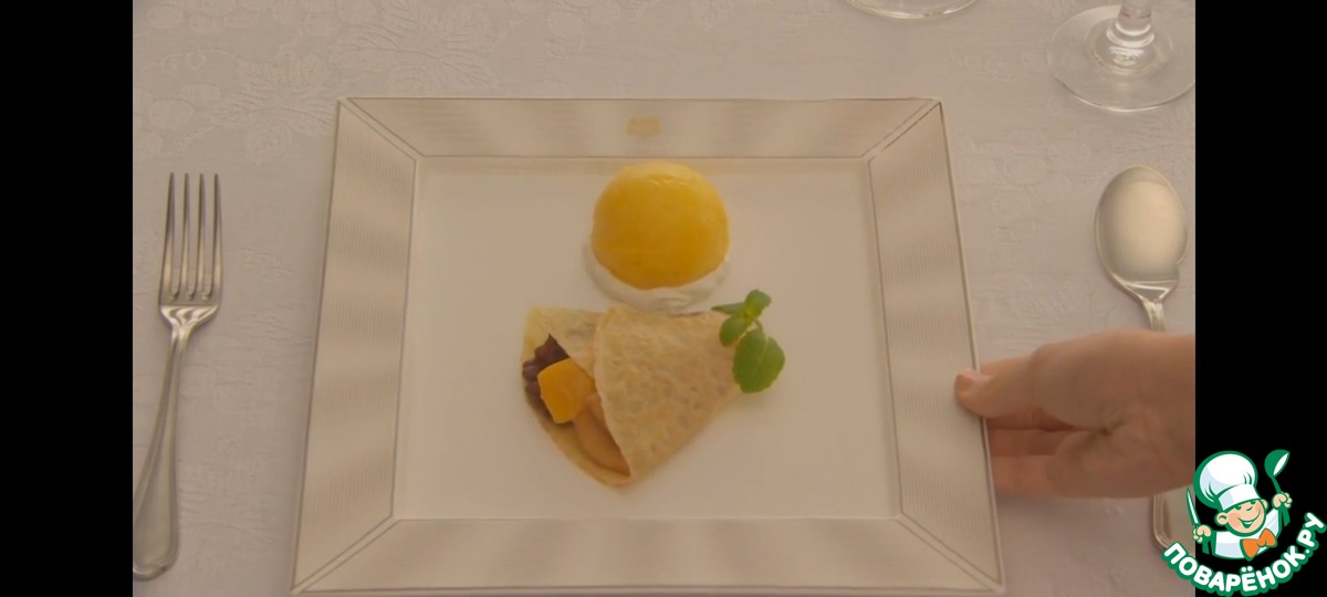 К/ф "Шеф-повар для посла" "- Десерт! Яблочно-манговые блинчики с щербетом и безе! "