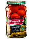 Томаты черриСостав: томаты черри, вода, сахар, соль, лимонная кислота, зелень, чеснок, специи. Емкость: 720 мл. Масса нетто 680 г. Описание: Деликатесные томаты черри - украшение праздничного стола. Выращеные под замаринованы в России по специальному рецепту без использования уксуса.