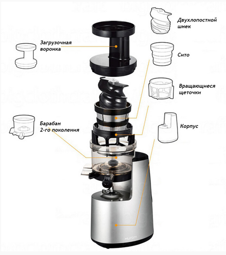 Вот уже сорок лет южнокорейская компания HUROM разрабатывает и выпускает соковыжималки. «HUROM» – самый известный бренд шнековых соковыжималок. Собственно «HUROM» – прародитель всех шнековых соковыжималок. В настоящий момент у компании 25 моделей, выпускаются они на двух заводах, общая мощность которых рассчитана на выпуск 6 миллионов шнековых соковыжималок в год. Одновременно компания ведет большую работу по разработке новых рецептов сокво, смузи и десертов на основе соков. Главное отличие HUROM – принципиально другой принцип отжима. Его еще называют «медленным», способом «продавливания». В результате продукты не нагреваются, не разрушаются витамины и ферменты, то есть максимально сохраняются полезные вещества. Сегодня на рынке России уже второе поколение шнековых соковыжималок