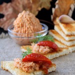 Паштет из консервированной горбуши Предлагаю Поварятам нежнейший паштет, который можно использовать для бутербродов и канапе, а можно нафаршировать им тарталетки, закусочные пирожные, промазать коржи торта и т. д.