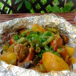 Баклажан, нафаршированный ароматной заправкой и помидорами, запеченный в фольге на углях, составит достойную конкуренцию шашлыку. Даже заядлые мясоеды, раз попробовав, никогда не отказываются от этого ароматного блюда!