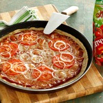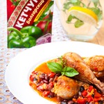 Цыпленок по-умбрийски Цыпленок с овощами, фасолью, белым вином с кетчупом «Махеевъ» Болгарский.