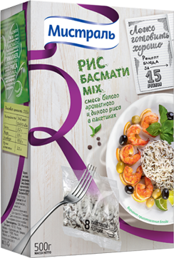 это сочетание риса Басмати, выращенного у подножий Гималаев, и темного сочного дикого риса Акватика, произрастающего на озерах Северной Америки.