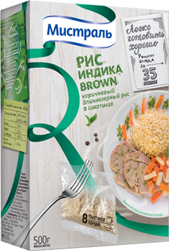 подвергнут бережной шлифовке, которая сохраняет отрубевую оболочку и зародыш зерна, а также все питательные вещества и витамины. Отрубевая оболочка придает рису ореховый привкус.