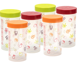 Пластиковые герметичные емкости с завинчивающейся крышкой, объемом 1 л. Подходят для хранения, замораживания, транспортировки, приготовления и разогрева в микроволновой печи Благодаря мерной шкале легко определяется объем продукта Оригинальный декор порадует любую хозяйку |