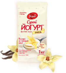 Смесь готовая сухая для йогурта «со вкусом Ванили». Свежий и живой йогурт на Вашем столе без красителей, без консервантов для всей семьи! В состав входят: сухое обезжиренное молоко, молочный белок, ароматизаторы (натуральный «Экстракт Сливок», «Ванилин»), подсластители (Е952, Е950, Е954, Е961), сахар, молочнокислые культуры: Lactobacillus bulgaricus, Streptococcus thermophilus, Lactobacillus acidophilus.
