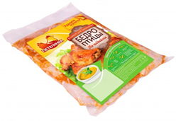 КРЫЛО птицы по-техасски Средний вес одной упаковки: 1 кг Белок: 12 г Жир: 13 г Углеводы: 2 г Ккал: 173 От 0° до 2° и отн. влажности (85+/-5 %): 7 суток