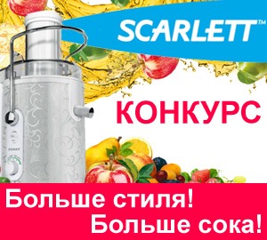 Авторы 6 (шести) рецептов-победителей получат в подарок соковыжималку SCARLETT SС-JE50S06 ![]() Приз за активное участие: соковыжималка SCARLETT SС-JE50S08 Приз выдается 6 (шестерым) участникам из числа тех, кто разместит 6 конкурсных рецептов и более. Получатели приза определяются на основании субъективного мнения независимого жюри конкурса. ![]() |
