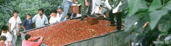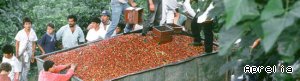 Созревшие плоды собирают вручную. В период сбора урожая сборщики раз в неделю проходят по всей плантации, срывают спелые красные ягоды кофе и высыпают их на ткань, расстеленную под кустами. При этом плоды сразу сортируют, чтобы удалить неспелые или переспелые.