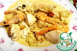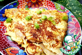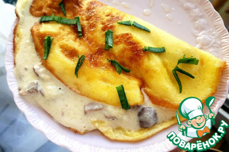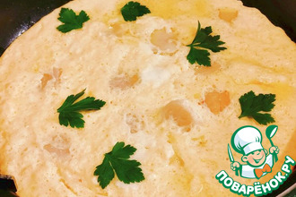 Необыкновенный омлет получился, очень и очень вкусный! Превосходный результат! Остались у меня в баночке морские гребешки, малосоленые. Вот их и использовала. Очень понравился такой вариант омлета. Готовила на обыкновенной сковоро...