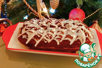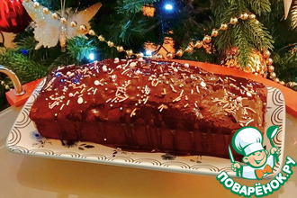 Готовила за две недели до Нового года. Завернула в пергамент и фольгу плотно, убрала в холодильник. И настал час! Развернула, сверху шоколадной глазурью полила и немного украсила. Очень вкусный, нежный и мягкий кекс! А какой арома...