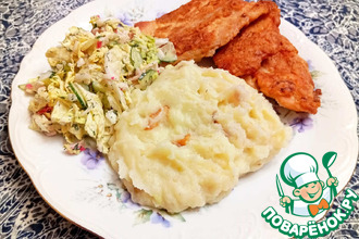 Чеснок быстро зазолотился и не хотел превращаться в однородное пюре, потом эти маленькие кусочки украсили картошку и дали ей необычный и приятный вкус. Маше спасибо, а всем, кто воспользуется рецептом, приятного аппетита.