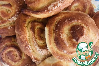 Муки ушло чуть больше,в духовке быстро выросли булочки.