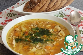 Отличный супчик! У меня только из куриных крылышек, остальное по рецепту. Никогда не соединяла разные крупы в супах, а зря, очень насыщенный по вкусу суп! Танечка, благодарю за отличный рецепт!