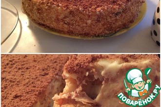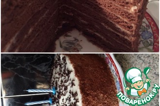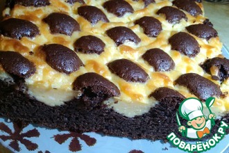 Часть муки заменила на какао, так как дети любят все шоколадное))) Вместо ванильного соуса взяла Бейлиз, форму использовала меньшего размера - 30см*22 см, поэтому время выпечки увеличила, но все-таки немножко передержала))) Полови...