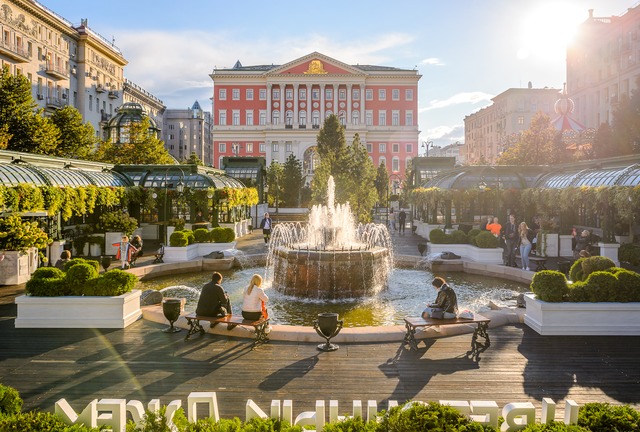Столешников переулок превратится… в настоящий южный курорт! Доминантои? роскошного сада на этой площадке станет пергола, увитая пышной глициниеи? и плетистыми розами. В проекте также будут использованы и другие растения Юга.