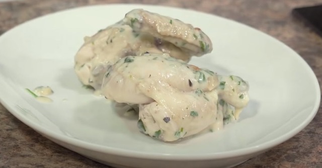 Залог вкусного блюда - это нежное куриное мясо и ароматные травы, которые в сочетании с чесноком и сметаной раскрываются в полной мере.