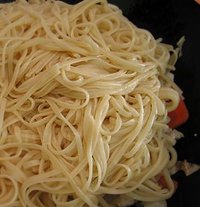 В новой лапше - по сравнению с обычной - в два раза повышено содержание белка и в пять - жира. Новый гастрономический продукт изготавливается из смеси из кукурузы и соевых бобов.