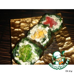 Роллы со шпинатом, овощами и сырной прослойкой от Оksy