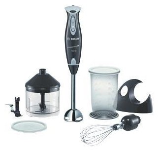 Погружной блендер мощностью 750 Вт. В комплекте: венчик для взбивания, измельчитель, мерный стакан. Дополнительные режимы: турборежим, колка льда.
