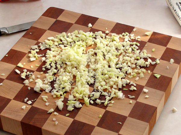 Итак, в мои руки попала торцевая доска – то есть сделанная так, что волокна древесины расположены перпендикулярно поверхности доски, а не параллельно, как в обычных досках. Считается, что торцевые доски не тупят ножи, а резать на них удобнее и проще, чем на обычных. Насколько это верно, я и проверила в ходе «тест-драйва».