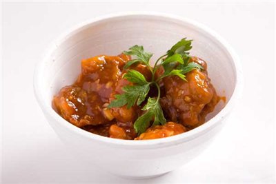 Бадьян и чили вынуть из соуса. Соус перелить в высокий, узкий сосуд и слегка взбить до консистенции пюре. Процедить через тонкое сито и перелить в чашу (соуса получится около 200 мл)